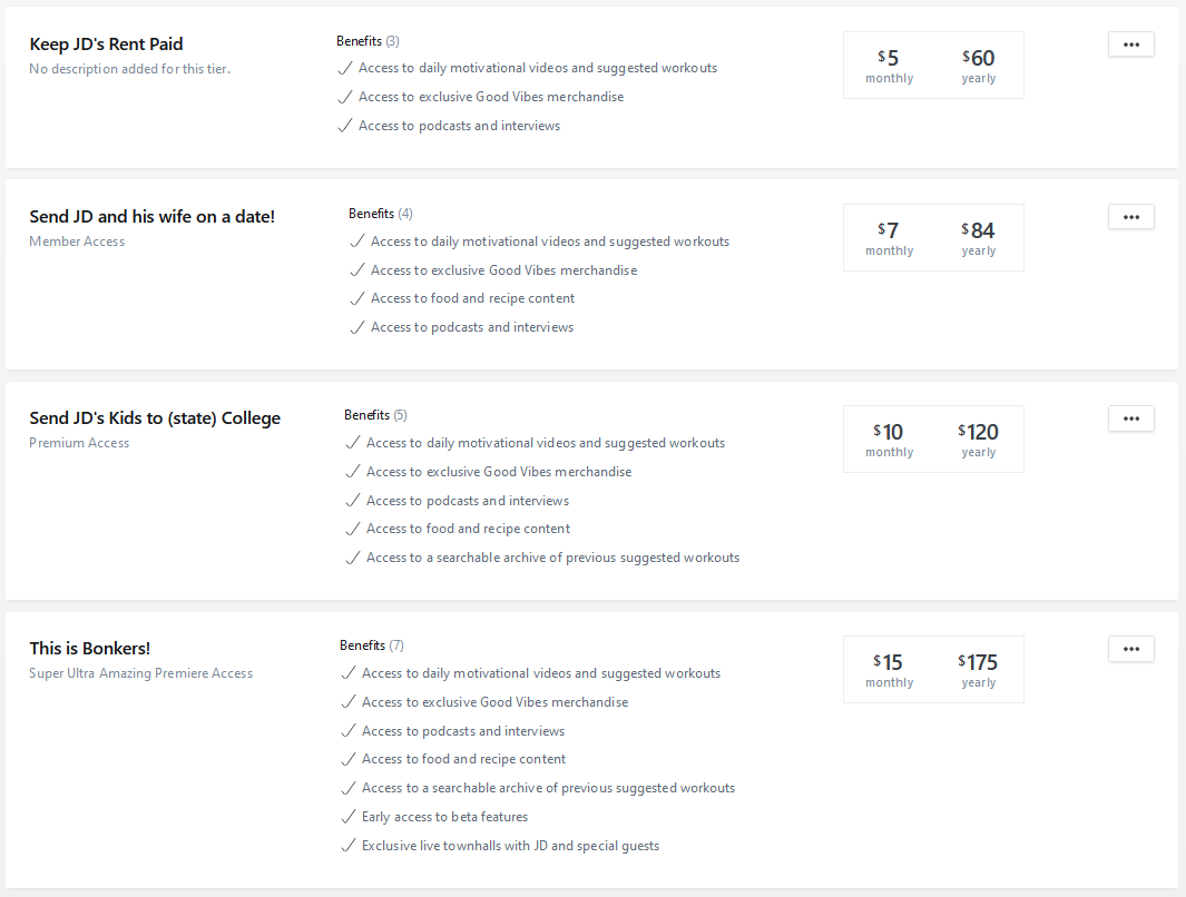The goal here is to have an affordable tier of membership but to also reward/incentivize those folks who subscribe at a higher level with extra content. In order to cover expenses, a paid subscription will soon be required to access the daily video and workout.