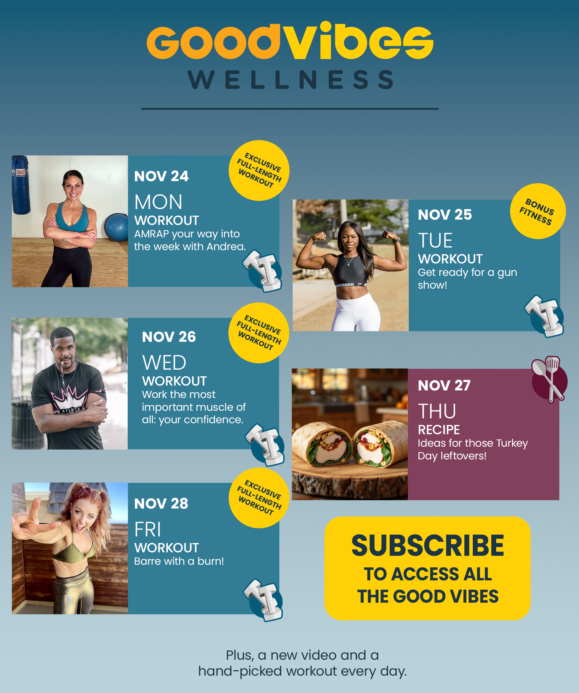 Give thanks all week for movement, health, and all the amazing things your body can do. Catch great workouts with @vynnessa_alease @jennacokerjones @coachdanerobinson and @ang.rac !